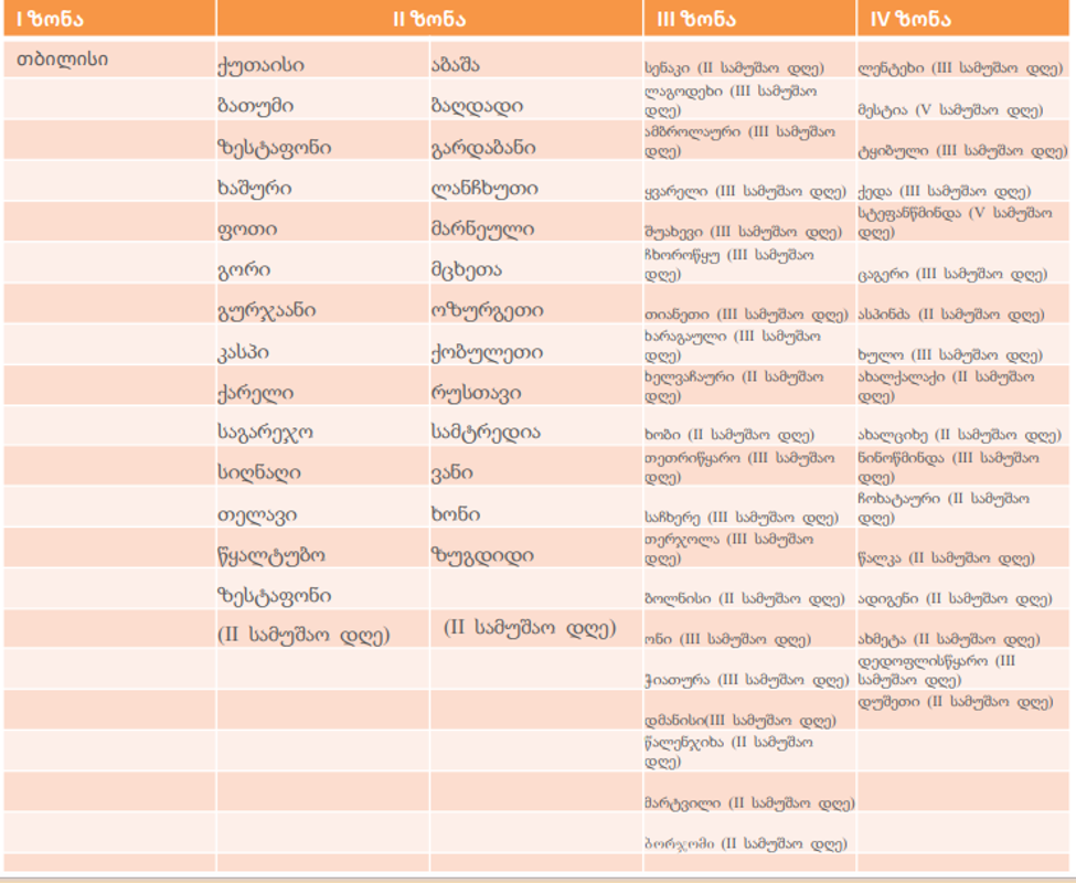 სოფლები – 3-4 სამუშაო დღე,